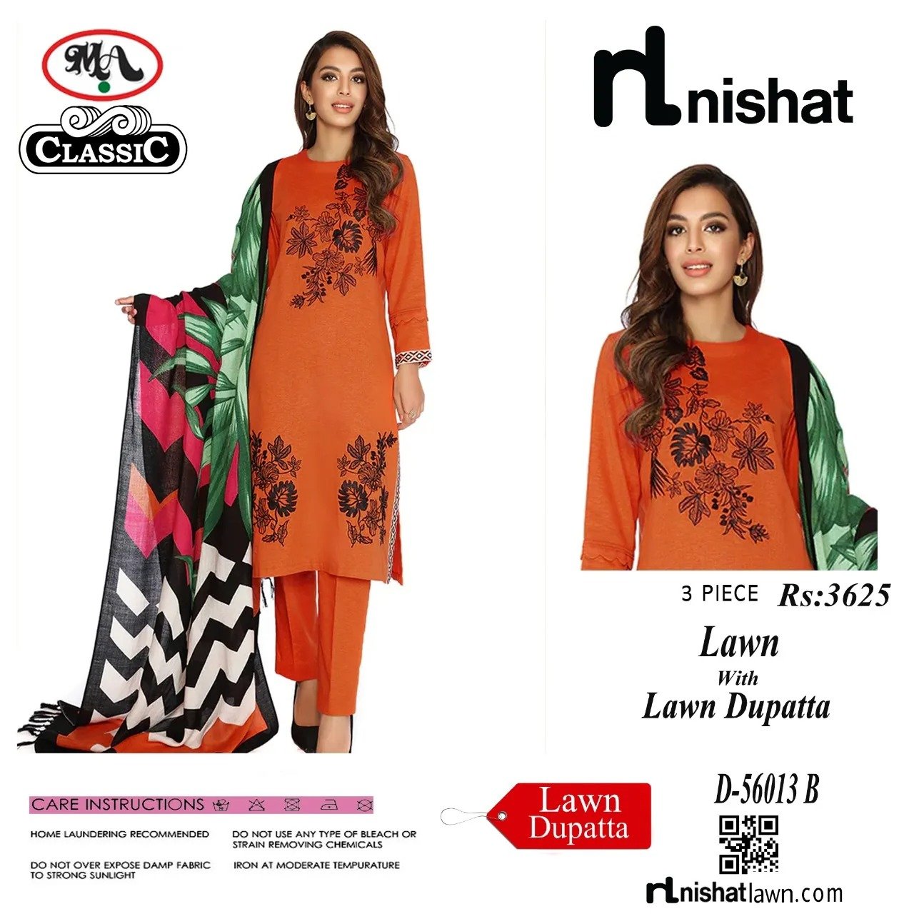 3 Pc Clasic Lawn With Lawn Dupatta Unstitched NISHAT D-56013 B