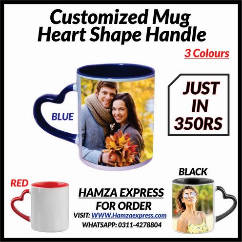 Customized Mug Heart Shape Handle 3 colours